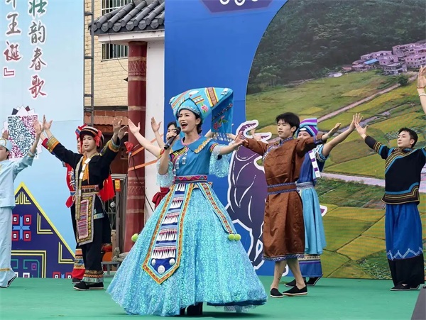 5月5日,农历四月初八,清远市连山革命老区上帅镇东君村迎来了一场别开生面的文化盛宴——2025年广东“四季春晚”春季展示活动之连山四月八“牛王诞”。此次活动由广东省文化和旅游厅指导,清远市文化广电旅游体育局、广东省文化馆联盟主办,不仅展现了壮族独特的民俗风情,更通过非遗与国风Cos的创意结合,为传统文化注入了现代活力。