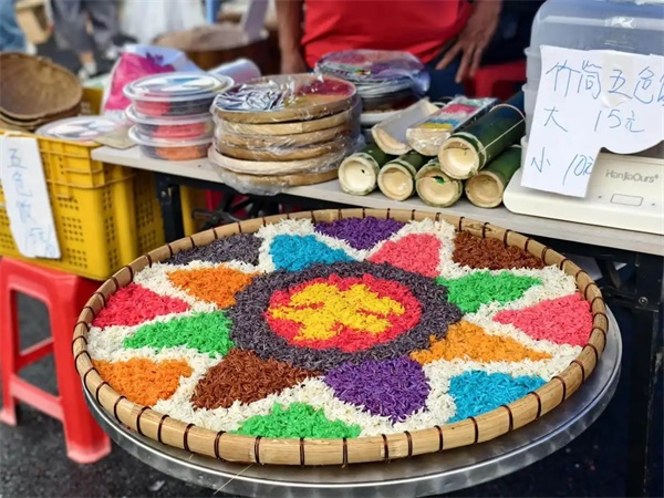 美食区则汇聚了壮家五色饭、竹叶粽、酿豆腐等传统小吃,香气四溢,吸引游客争相品尝。非遗文创展区中,壮绣服饰体验成为“流量密码”,游客们身着精美壮锦,在铜鼓声中沉浸式感受民族文化的魅力。